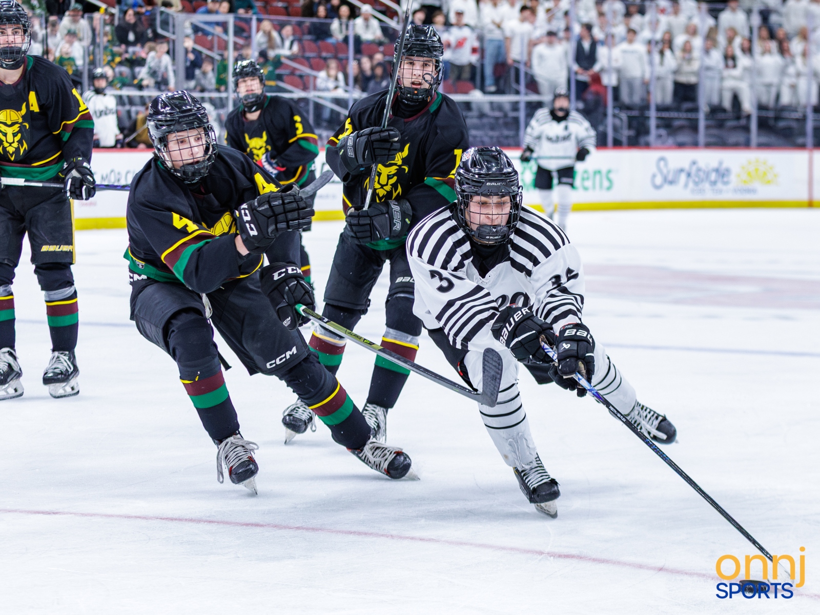 Action from the 2026 NJSIAA Boys Ice Hockey Public Co-Op State Championship game between KJS United and North Hunterdon. (Photo by Dmitriy Piyevskiy/OnNJ Sports)