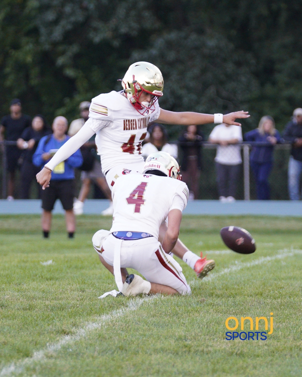 Action from a high school football game between Winslow and Bergen Catholic on Sept. 12, 2025. (Photo by John Hund/OnNJ Sports)