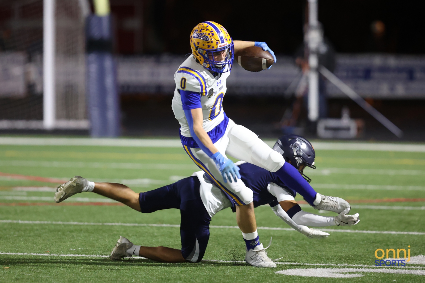 Myles Balchan led the way offensively for Rutherford. Balchan was 21 of 37 for 221 yards passing with two touchdowns and two interceptions. He also led the way on the ground for Rutherford, carrying the ball 15 times for 93 yards and an additional TD. A.J. Nunziato and Quinn Weber were Balchan’s top targets with six receptions each and 76 and 75 yards receiving, respectively. Nunziato also hauled in a TD reception.