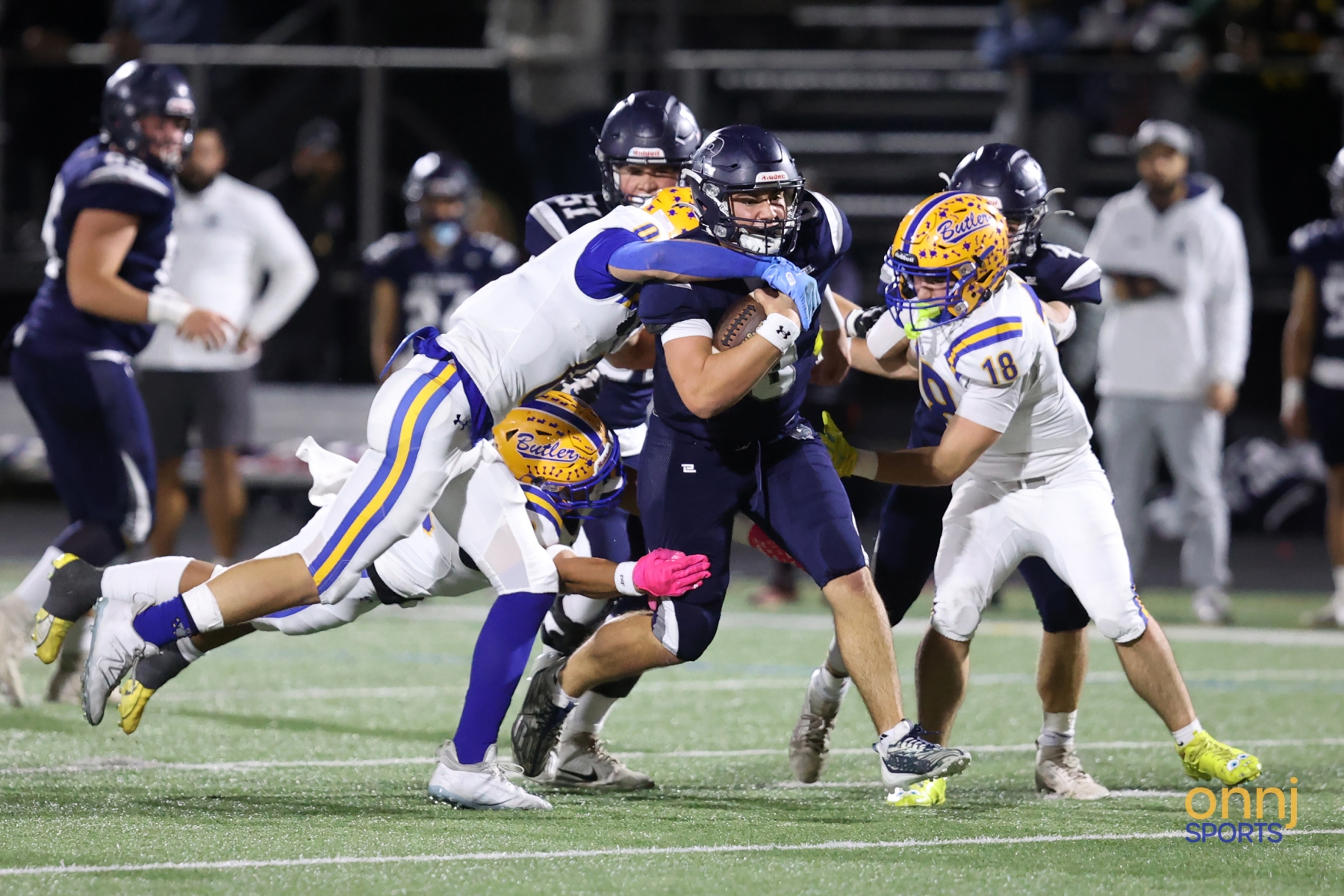 Myles Balchan led the way offensively for Rutherford. Balchan was 21 of 37 for 221 yards passing with two touchdowns and two interceptions. He also led the way on the ground for Rutherford, carrying the ball 15 times for 93 yards and an additional TD. A.J. Nunziato and Quinn Weber were Balchan’s top targets with six receptions each and 76 and 75 yards receiving, respectively. Nunziato also hauled in a TD reception.