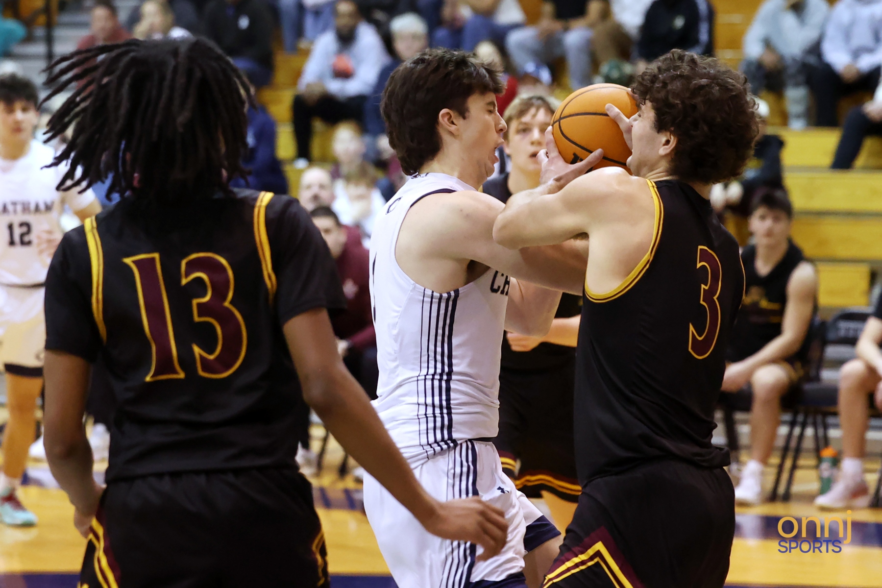 Action from a 2026 Morris County Boys Basketball Tournament semifinal game between Madison and Chatham on Feb. 14, 2026. (Photo by Christopher Shannon/OnNJ Sports)