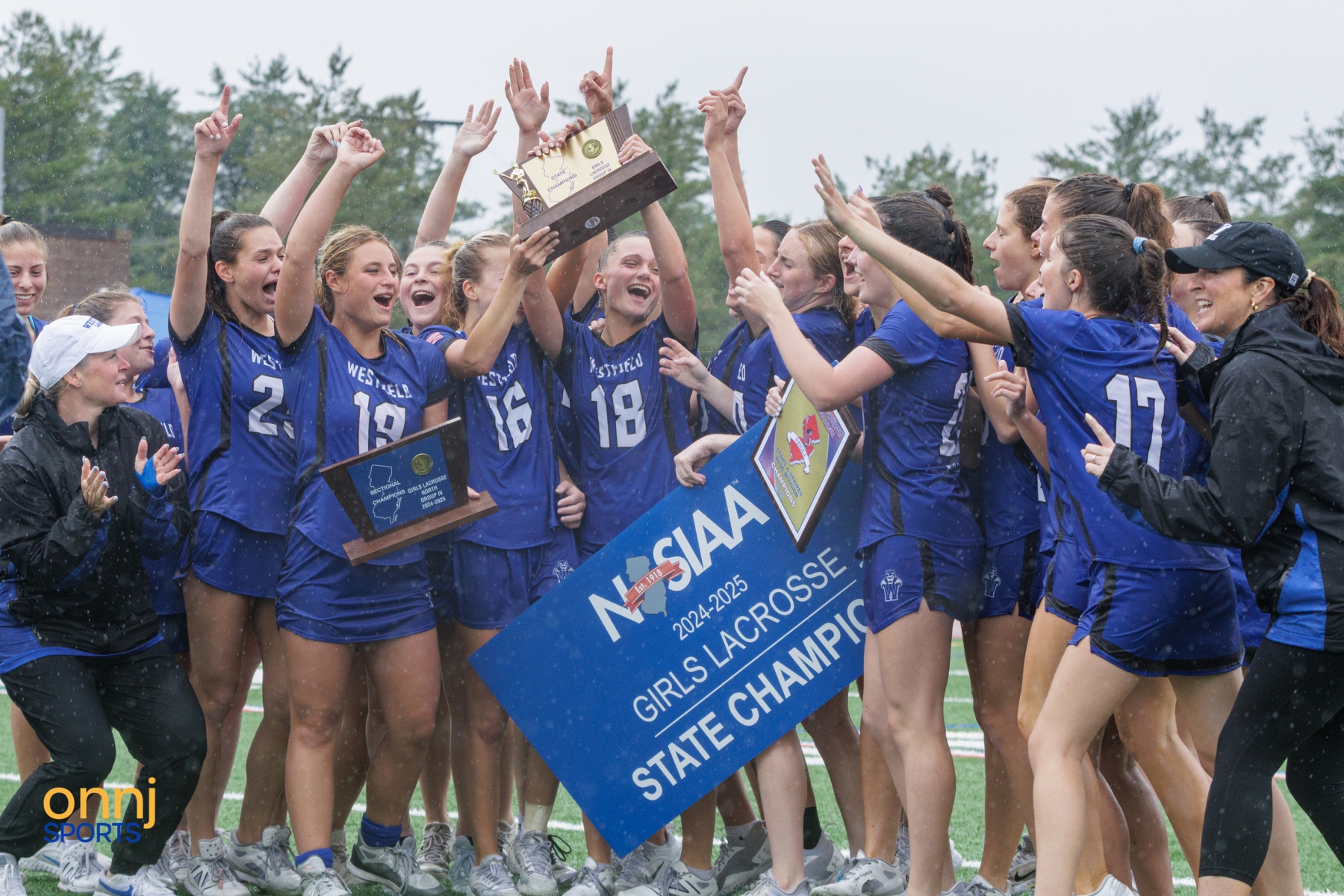 Westfield celebrates winning the 2025 NJSIAA Group 4 Girls Lacrosse State Championship. (Photo by Dmitriy Piyevskiy/OnNJ Sports)