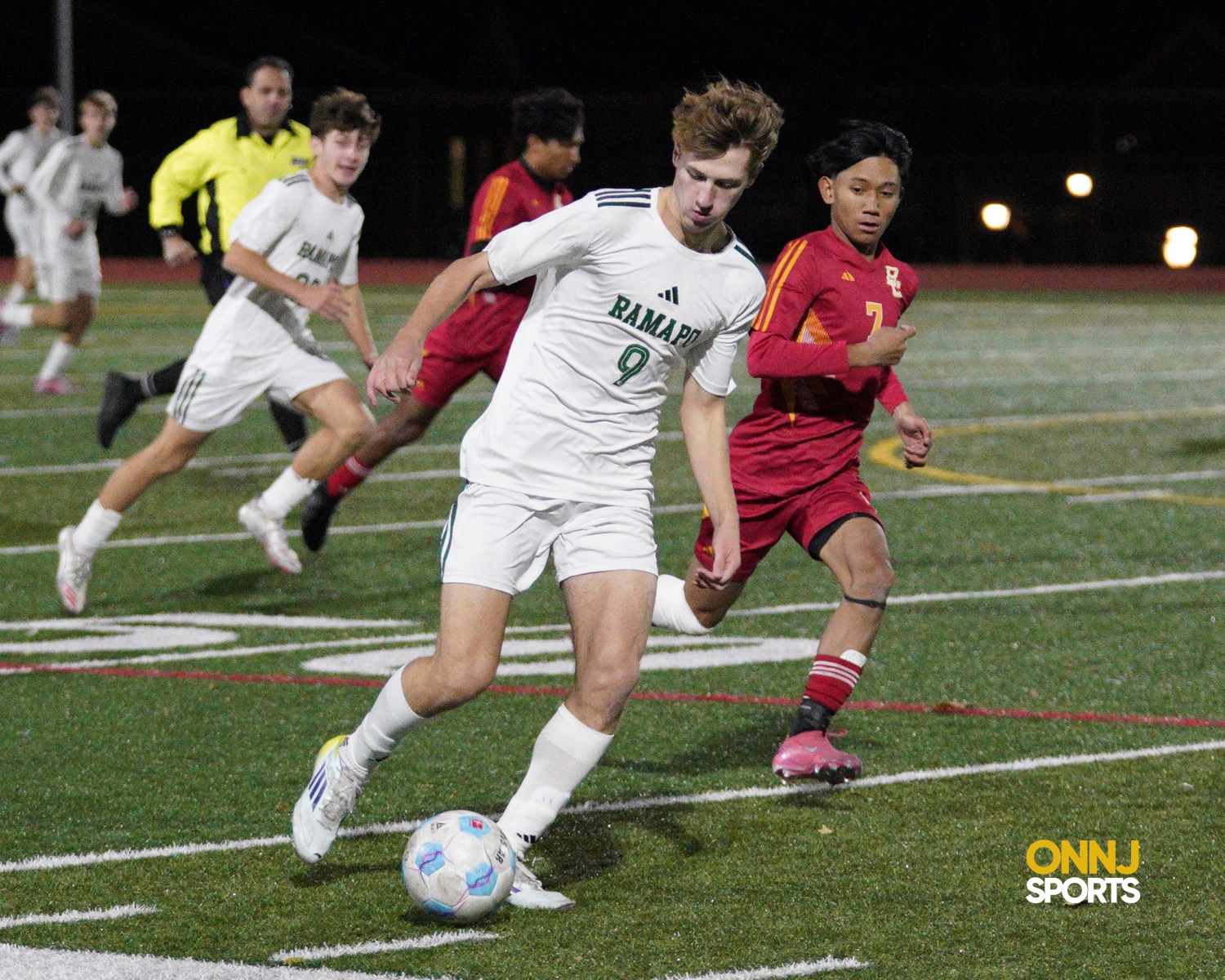 Action from the 2025 Bergen County Boys Soccer Championship between Bergen Catholic and Ramapo. (Photo by John Hund/OnNJ Sports)