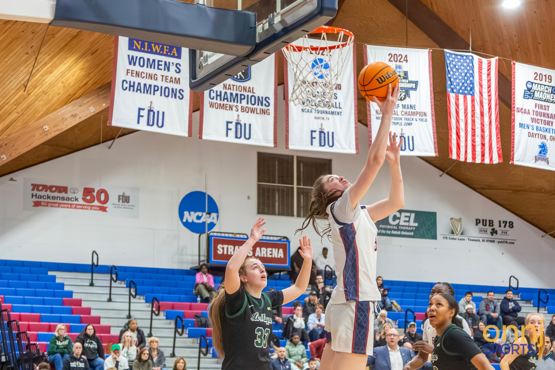 Action from Fairleigh Dickinson's 2026 NEC Women's Basketball Tournament semifinal game against Le Moyne. (Photo by Claudette Alcober/OnNJ Sports)