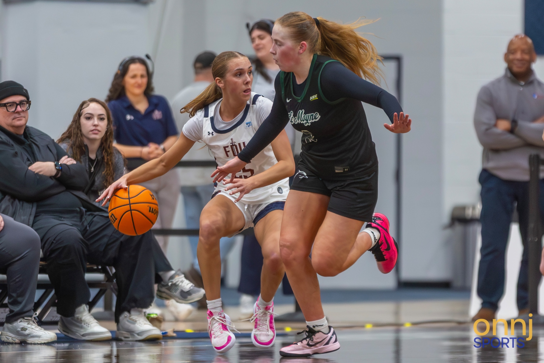 Action from Fairleigh Dickinson's 2026 NEC Women's Basketball Tournament semifinal game against Le Moyne. (Photo by Claudette Alcober/OnNJ Sports)