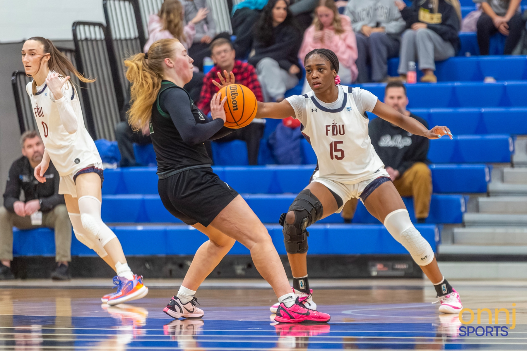 Action from Fairleigh Dickinson's 2026 NEC Women's Basketball Tournament semifinal game against Le Moyne. (Photo by Claudette Alcober/OnNJ Sports)