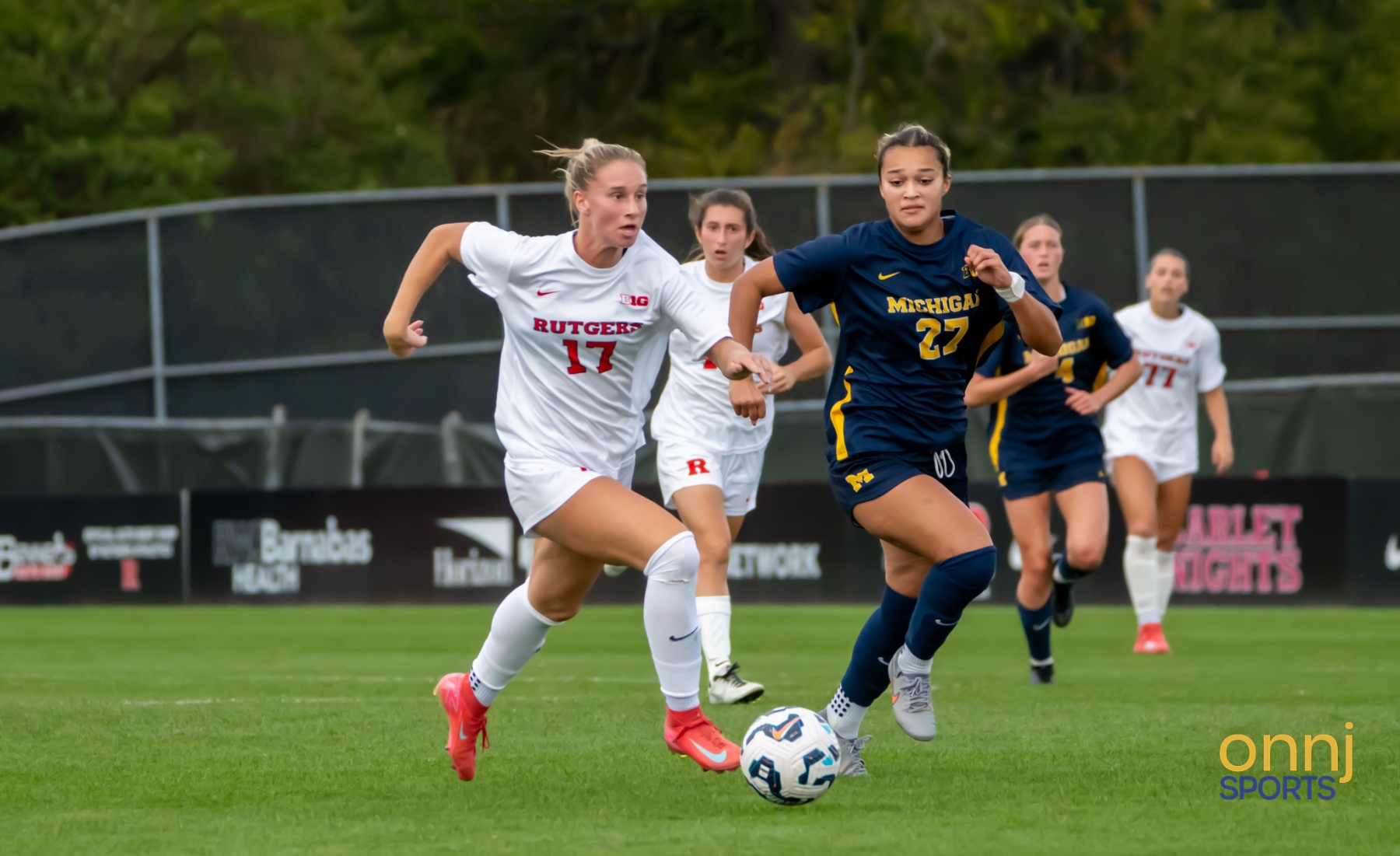Action from Rutgers' women's soccer game against Michigan on Oct. 19, 2025. (Photo by Michael Franco/OnNJ Sports)