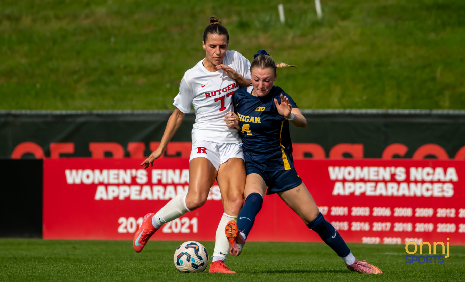 Action from Rutgers' women's soccer game against Michigan on Oct. 19, 2025. (Photo by Michael Franco/OnNJ Sports)